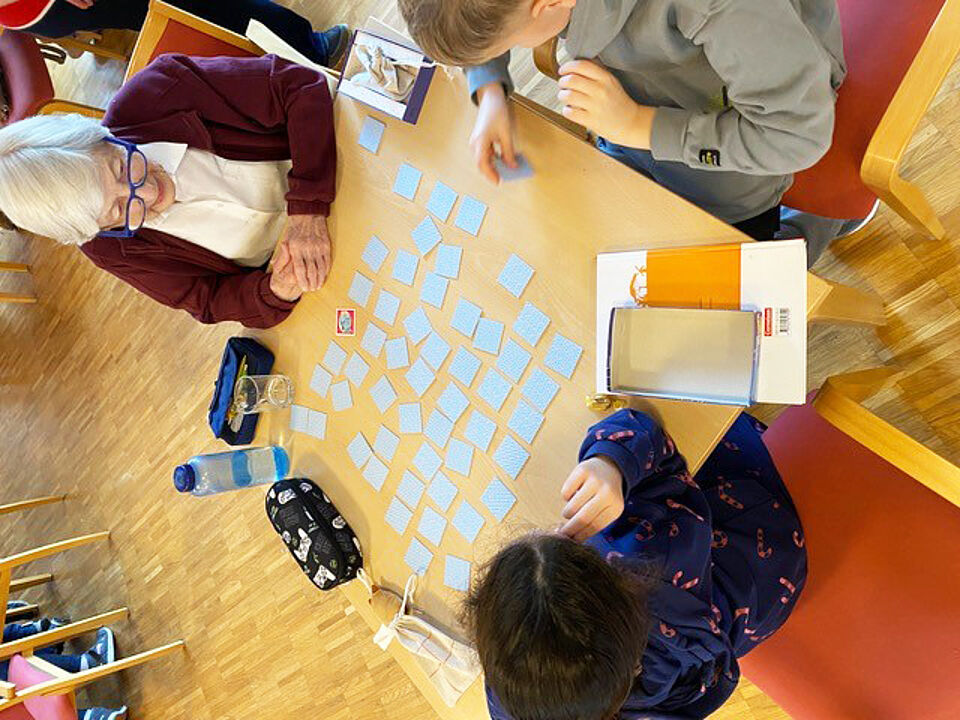 Mensch ärgere Dich nicht, Memory - diese Spiel-Klassiker durften beim gemeinsamen Vormittag natürlich nicht fehlen. Es war für beide Seiten, die Bewohnerinnen und Bewohner im Haus “Am Roser” und die Schulklasse samt ihrer Begleitung, ein beseelender Vormittag.