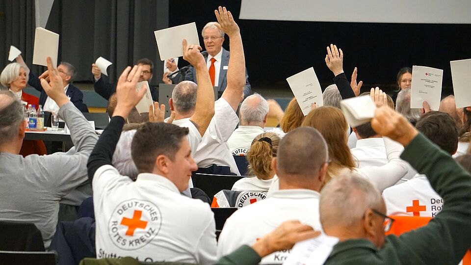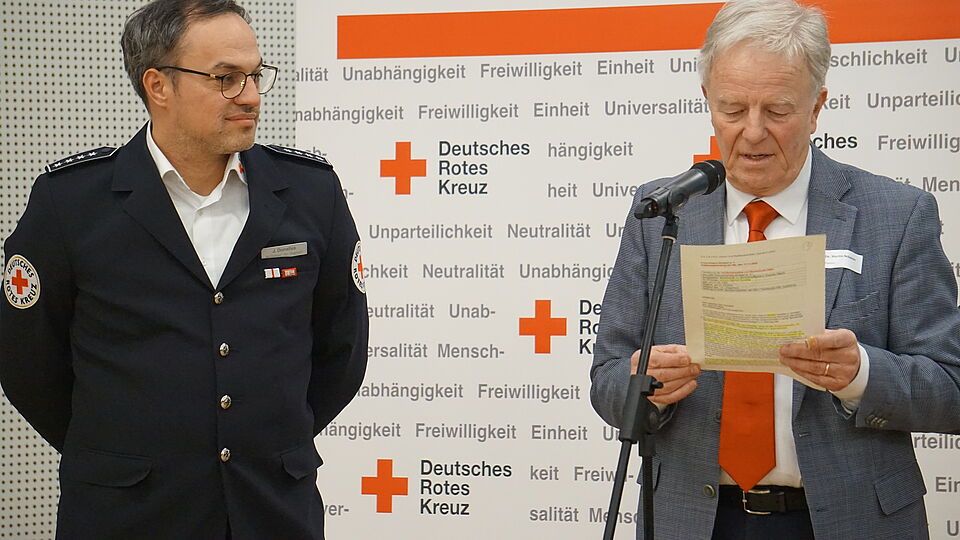 Zurück ins Jetzt ging es mit dem Tätigkeitsbericht des DRK-Präsidenten Dr. Martin Schairer. "Wir können uns nicht zurücklehnen," so seine nüchterne Feststellung. Für das DRK Stuttgart gibt es nach wie vor viel zu tun: Rücklagen müssen gebildet, Strukturen weiter bearbeitet werden. Zentral sind aber auch Weichenstellungen an anderer Stelle – zum Beispiel im Bereich des Bevölkerungsschutzes, der angesichts zunehmender Krisen wie Ukraine-Krieg und Wetterextremereignisse immer mehr an Bedeutung gewinnt.