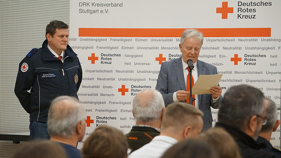 "Ihr seid super", lobte Stadtrat Klaus Nopper (CDU) die DRK-Arbeit in Stuttgart, machte in seinem Grußwort aber zugleich auf die schwierige Haushaltslage der Stadt aufmerksam. Oberin Anne-Kathrin Gerhardts von der Württembergischen Schwesternschaft vom Roten Kreuz e.V. dankte den Versammelten für "ihre Professionalität, ihren Idealismus und auch dafür, in schwierigen Zeiten Haltung zu zeigen". Und Dr. Georg Belge, Chef der Stuttgarter Feuerwehr, verdeutlichte: "Die Blaulichtfamilie braucht sich gegenseitig." Dass die Werte der Rotkreuzgemeinschaft wie Menschlichkeit und Neutralität seit über 160 Jahren wegweisend sind, machte Dr. Volkmar Schön, Vizepräsident des Deutschen Roten Kreuzes in Berlin, in seinem Ausflug in die DRK-Geschichte deutlich.