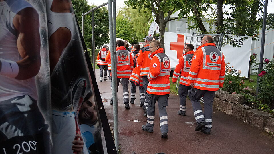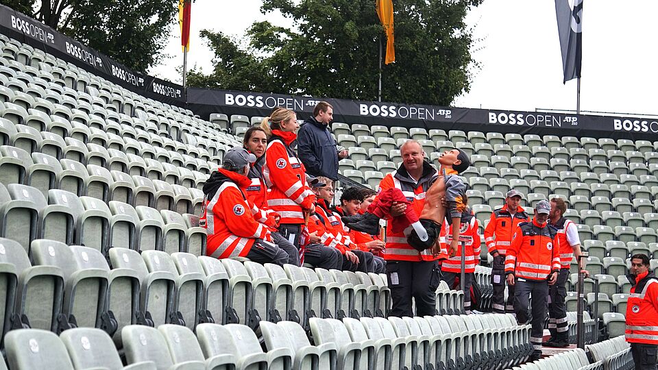 Sie sind eine der größten und ältesten Bereitschaften im DRK-Kreisverband Stuttgart und gleichzeitig ungemein innovativ: Das Team der Bereitschaft Feuerbach/Botnang. Einen Tag vor Beginn der "Boss Open" haben wir die ehrenamtlichen Helferinnen und Helfer bei einer Sicherheitsübung auf der Tennisanlage des TC Weissenhof in Stuttgart besucht.