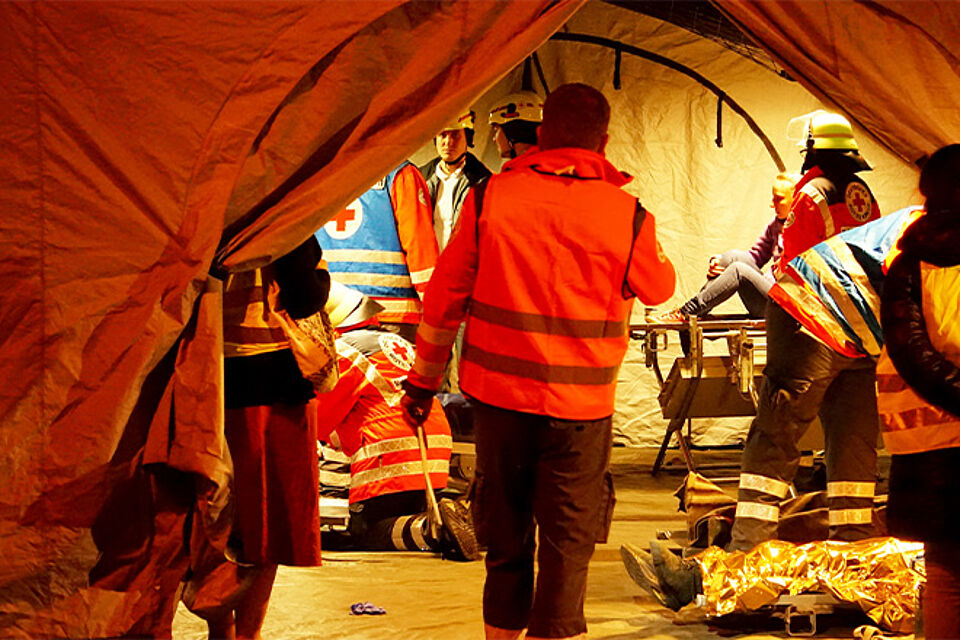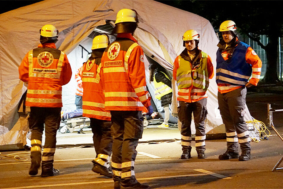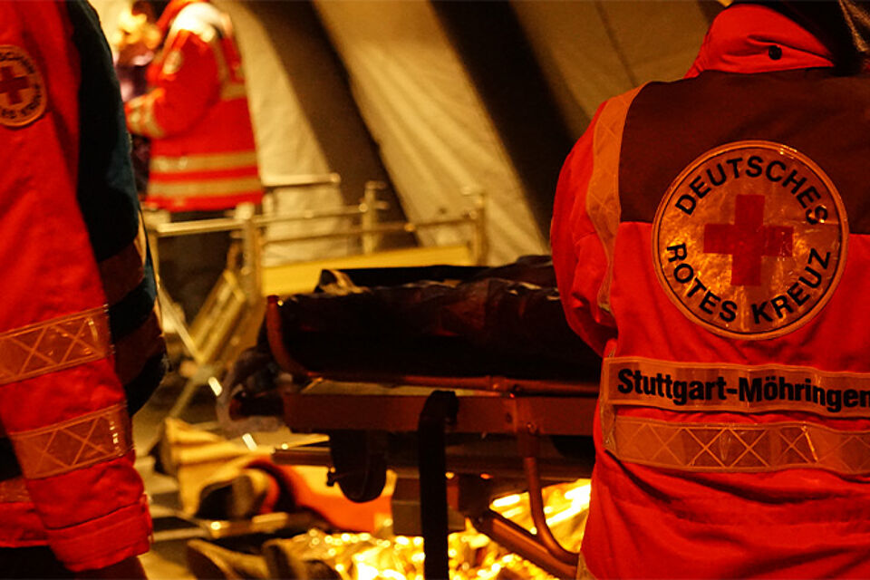 Ganz schön herausfordernd: Zelt aufbauen, zahlreiche Verletzte versorgen, Krankentransport organisieren. Aber das Team der Bereitschaft 15 des DRK Stuttgart-Möhringen ist mit Leidenschaft bei der Sache. Und zum Glück ist es nur eine Übung, die an diesem Abend beim Gazi-Stadion auf der Waldau mit den Kollegen aus Degerloch durchgezogen wird. Denn die Bereitschaft Möhringen bildet mit der Bereitschaft Degerloch die Einsatzeinheit 4, die im Bevölkerungsschutz bei sogenannten Großschadensereignissen gefragt ist.