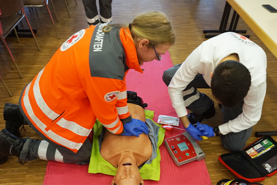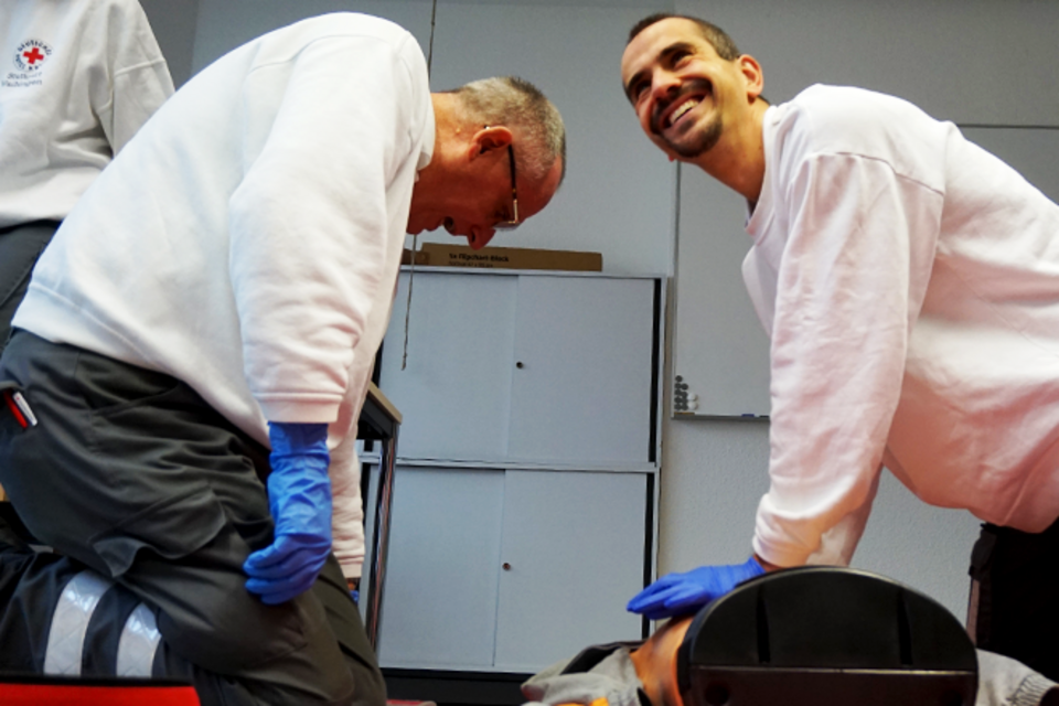 Den Zusammenhalt des Teams stärken aber auch Termine wie dieser: An einem Samstag wird mal wieder die Reanimation trainiert. Jeder Handgriff muss im Falle eines Falles sitzen. Jedes Gerät gilt es im Notfall korrekt bedienen zu können. Da wird zugehört, geprüft und an der Reanimationspuppe getestet, aber auch viel gelacht. Es ist bestens ersichtlich: Das Team ist mit Leidenschaft bei der Sache.