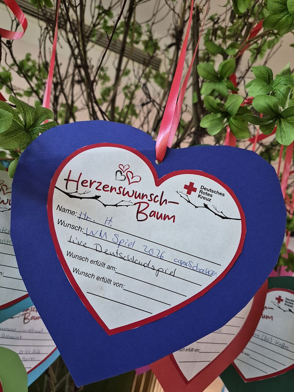 Jedes Herz am Wunschbaum erzählt eine eigene Geschichte. Immer mehr Bewohnerinnen und Bewohner teilen ihre ganz persönlichen Wünsche – mal klein, mal groß, aber immer bedeutungsvoll. Diese individuellen Herzenswünsche zeigen, wie vielfältig die Lebenswege und Sehnsüchte in unserem Haus sind und wie viel Freude entsteht, wenn wir ihnen gemeinsam Raum geben.