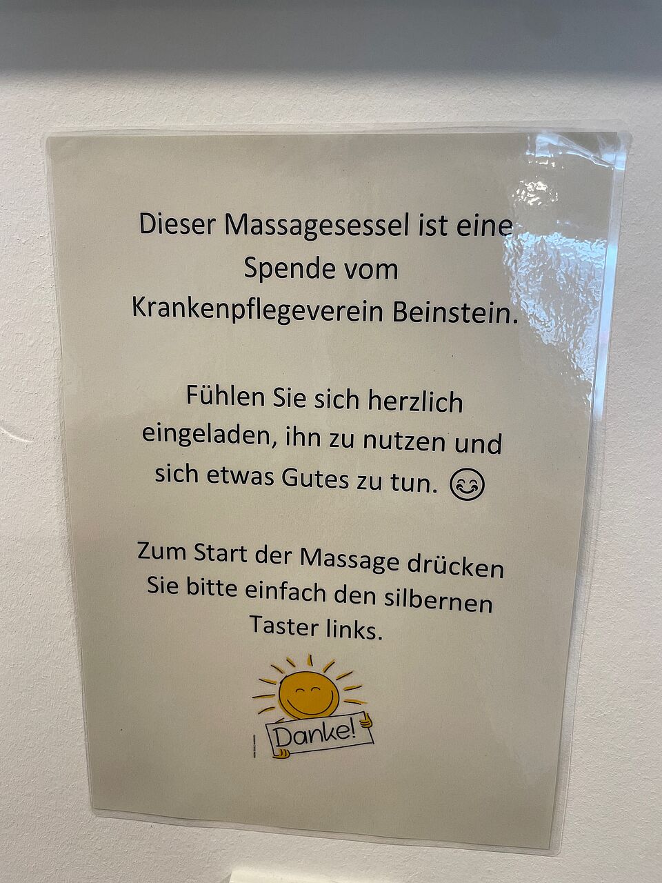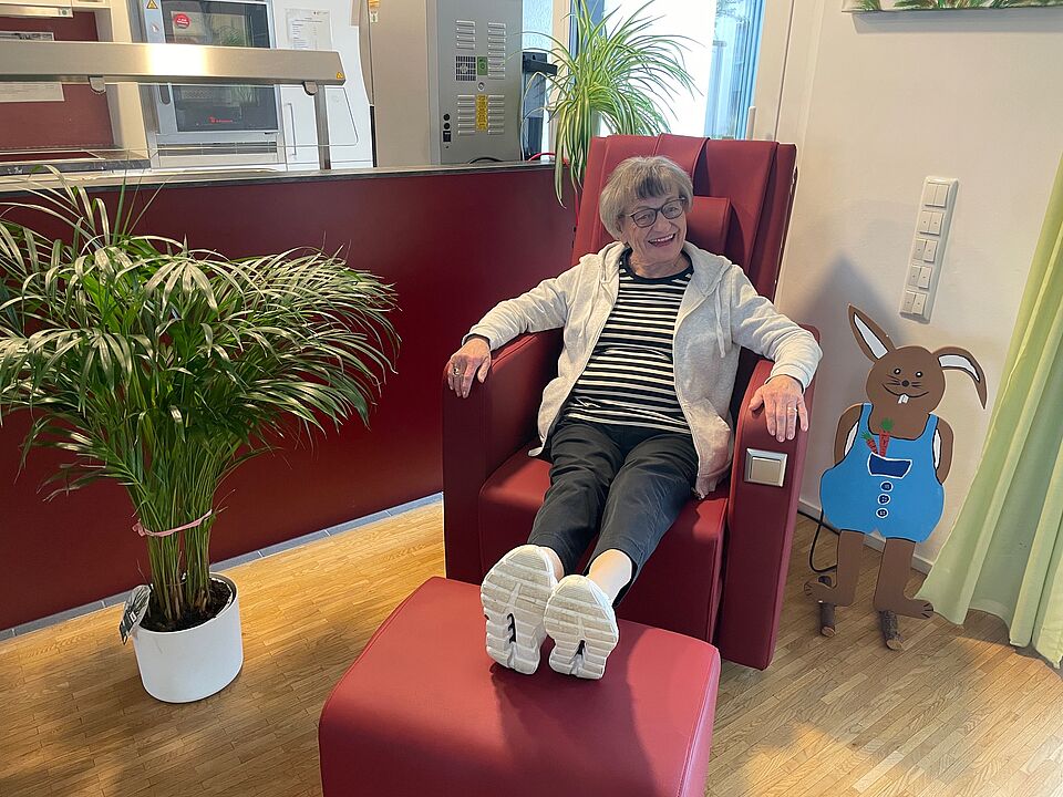 Der Krankenpflegeverein Beinstein hat dem Seniorenzentrum Beinstein einen hochwertigen Massagesessel gespendet. Dieser wurde bei der Firma Massagesessel Welt & Massagetechnik erworben und sorgt seitdem für große Freude bei unseren Bewohner*innen. Der Massagesessel ist bei den Bewohner*innen und dem Mitarbeitenden-Team jederzeit sehr beliebt. Einige Bewohnerinnen bringen am morgen schon ihr Handy mit, lassen ihre Lieblingsmusik laufen und genießen mehrmals täglich eine entspannende Massage. Andere nutzen die Zeit gerne für ein Schwätzchen mit Mitbewohner*innen oder Mitarbeitenden. So bietet der Sessel regelmäßig eine wohltuende Auszeit und trägt zum Wohlbefinden bei. Alle Besucher der Einrichtung sind herzlich eingeladen, den Massagesessel bei ihren Besuchen zu nutzen und die entspannende Wirkung selbst zu erleben.